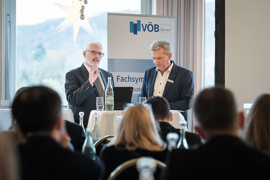 FinLegal-Beiratsmitglied Wilfried Schütte (DZ Bank) und FinLegal-Geschäftsführer Holger Heuschen – gehen typischen Fragestellungen zur Juristischen Due Diligence im internationalen Geschäftsverkehr auf den Grund (Foto: VÖB-Service/Martin Magunia)